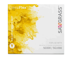 Sawgrass VersiFlex™ Yellow is an individual color cartridge within the VersiFlex ink system, developed for creators who need accurate yellows, clean highlights, and smooth tonal transitions across supported materials. Formulated exclusively for Sawgrass SG500 and Sawgrass SG1000 printers, it delivers consistent ink flow and dependable results when used with the proper Sawgrass media and software settings.